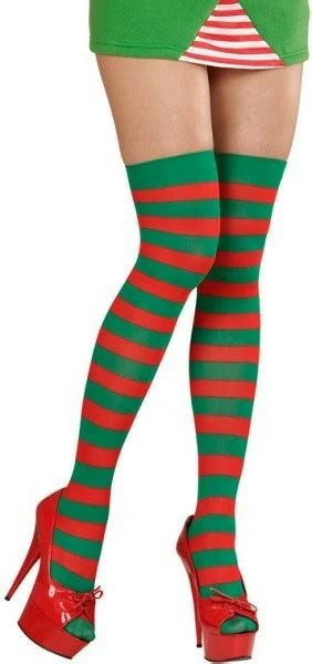 Cette paire de bas rayé rouge et vert seront parfait pour compléter votre déguisement sexy ou pas de Noël !