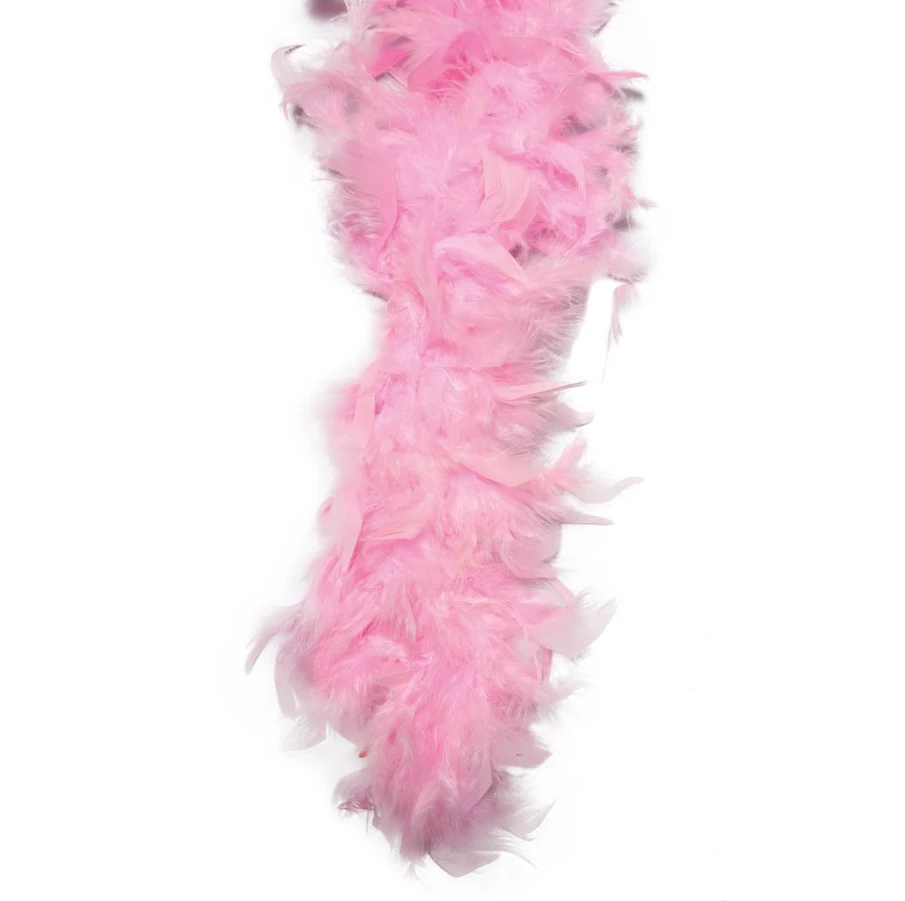 Ce boa de 60 grammes est déclinable en 10 couleurs : blanc, bleu roi, fuchsia, rose fluo, rose, rose pale, jaune, orange, rouge, vert foncé et vert fluo.
