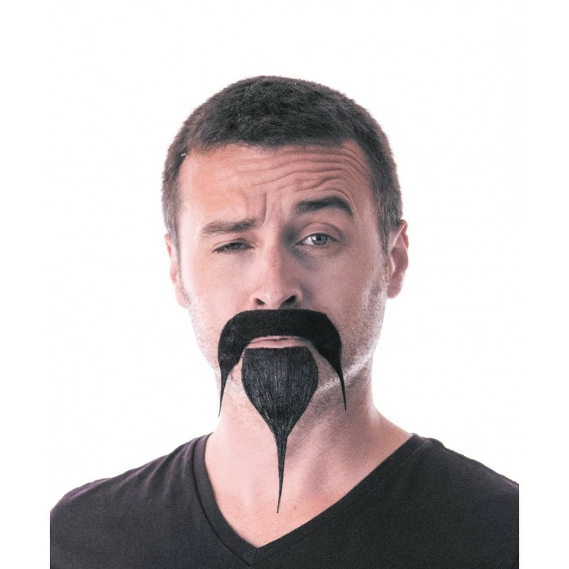 Ce lot contient une moustache qui tombe sur les côtés et d’une petite barbe fine et longue.