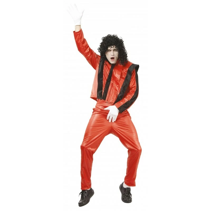 Ce déguisement se compose d’un blouson et d’un pantalon rouge avec bande noire sur les côtés.