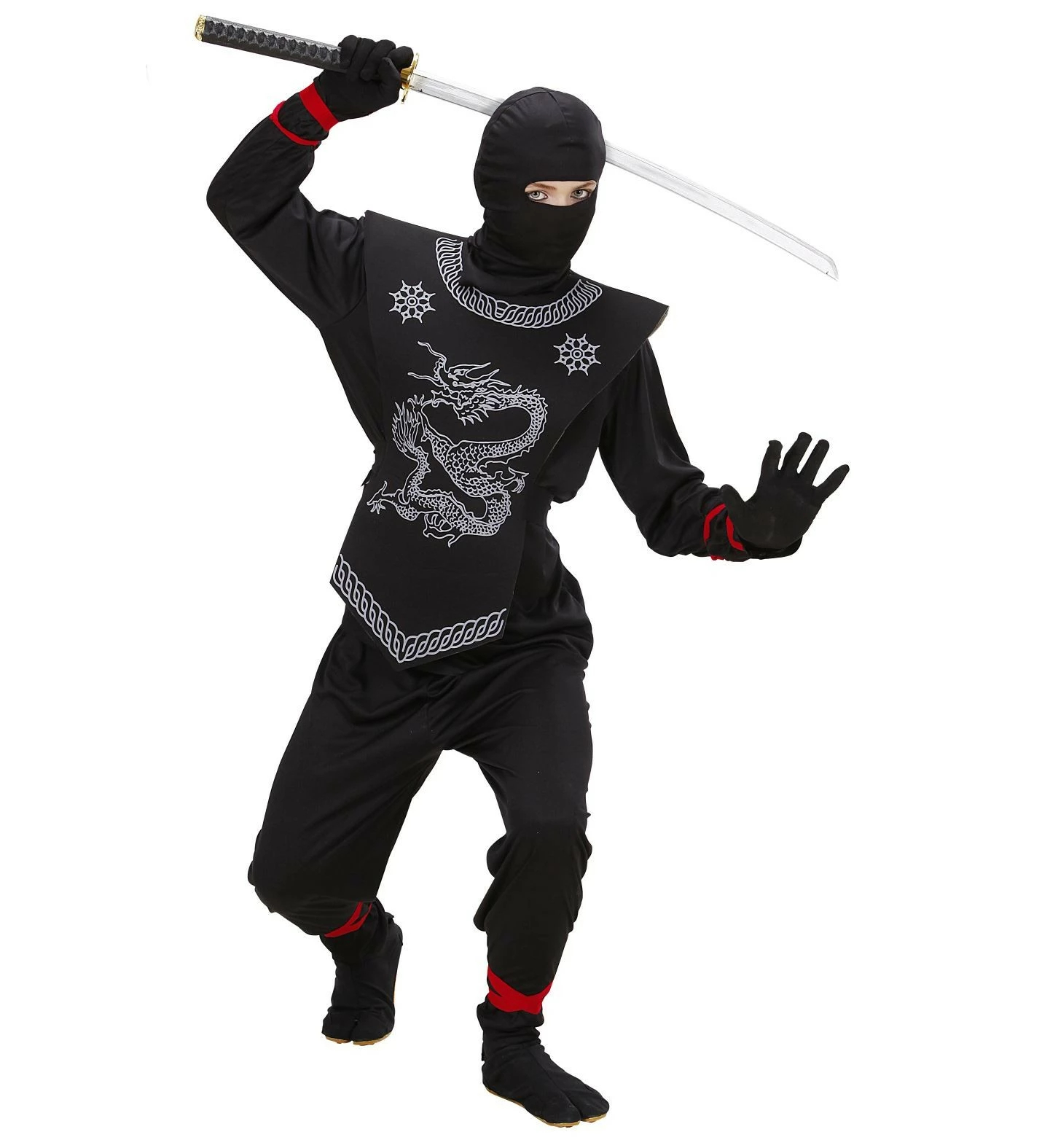 Ce déguisement se compose d’un haut noir avec de jolis détails argentés à manches longues avec lacets rouges, d’un pantalon noir, et d’un masque noir.