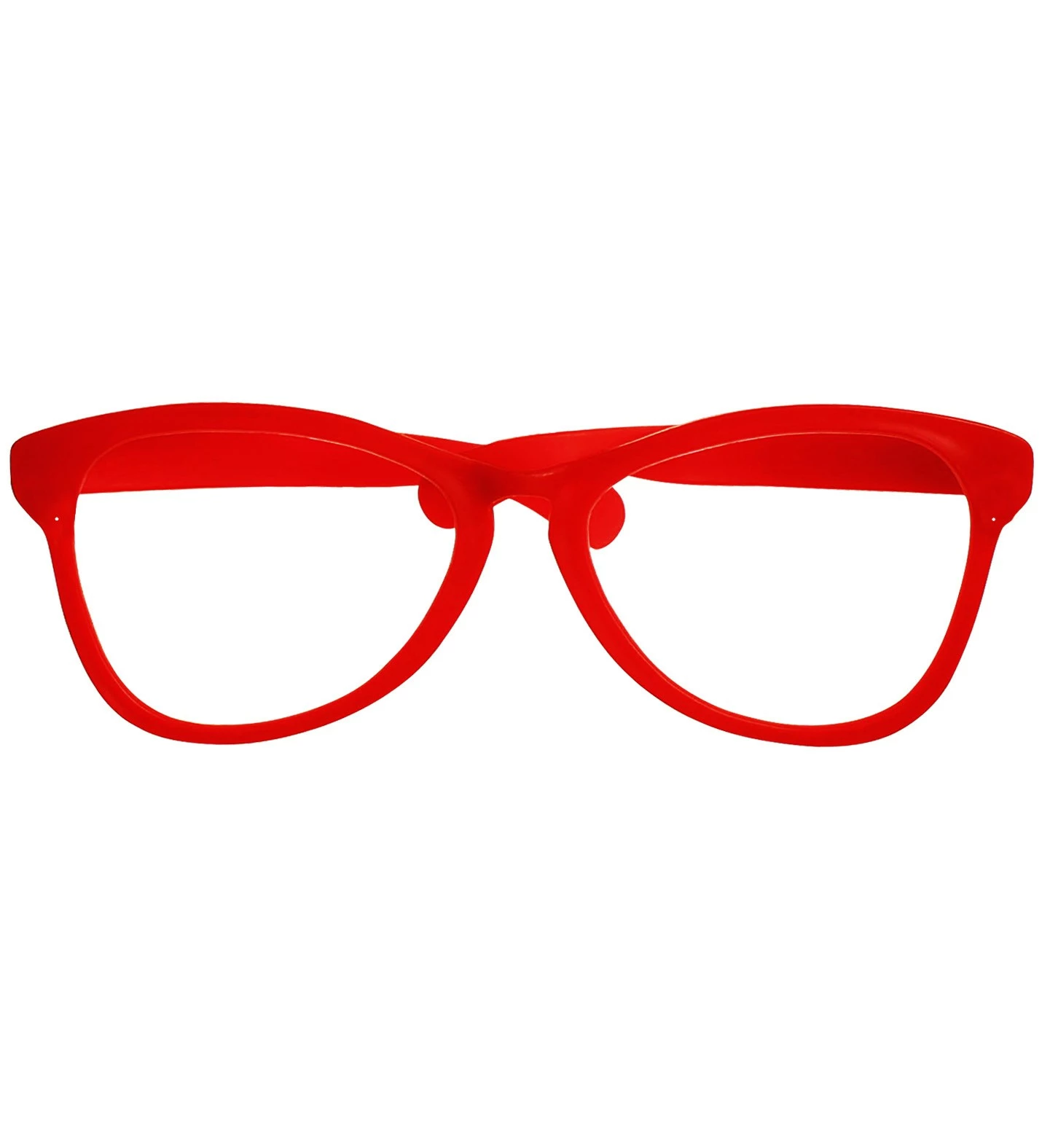 Ces lunettes sont en plastique sans verres et sont disponibles en jaune ou en rouge.