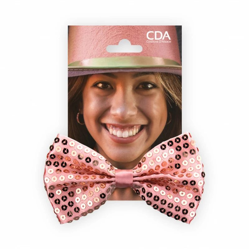 Le nœud papillon est orné de paillettes étincelantes qui ajoutent une touche de brillance et de glamour à l’ensemble.