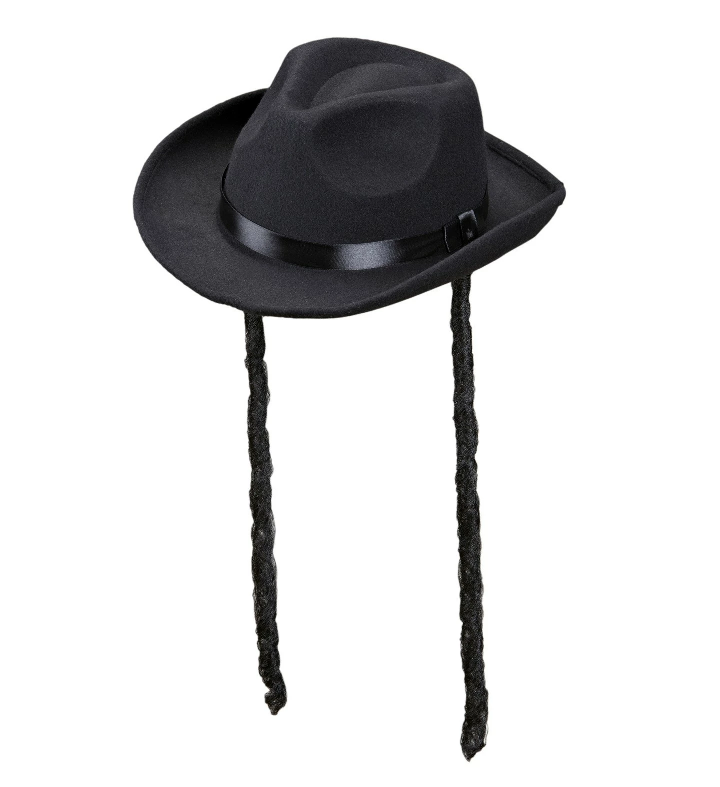 Chapeau de rabbin réaliste en feutrine avec papillottes.
